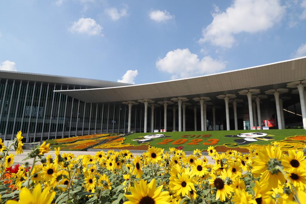 這是10月24日拍攝的國家會展中心(上海)南廣場。位于上海青浦的國家會展中心(上海)場館外部進博會主題裝飾工程目前已進入收尾階段,包括南廣場在內(nèi)的四個出入口都已裝飾一新,迎接即將開幕的第六屆中國國際進口博覽會。新華社記者 方喆 攝