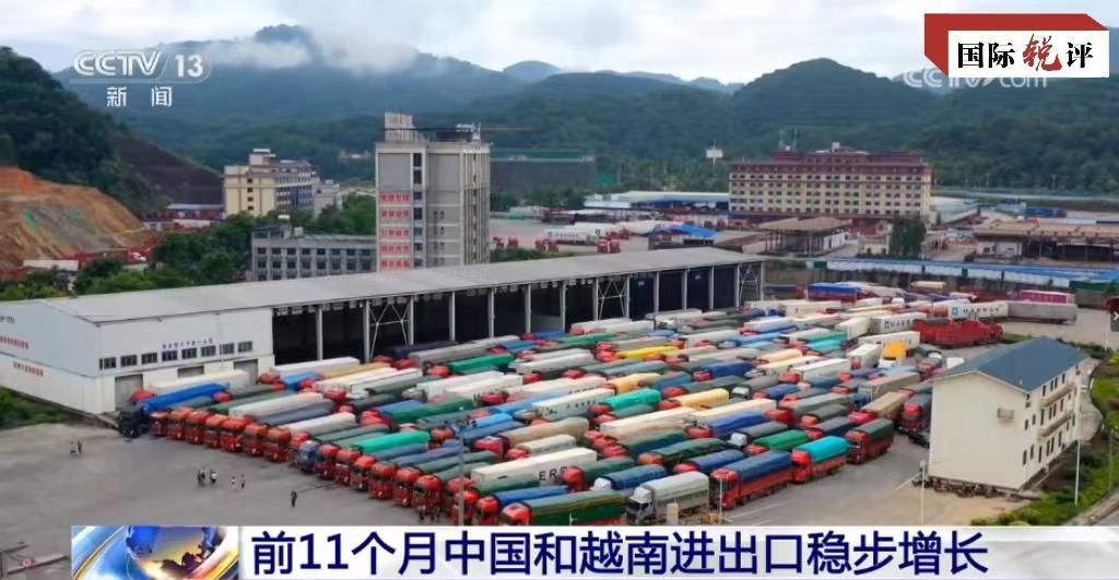 經(jīng)貿(mào)合作是中越關(guān)系的一大亮點。近些年,越南的火龍果、香蕉、榴蓮等優(yōu)質(zhì)農(nóng)產(chǎn)品走進中國市場,深受中國消費者喜愛。河內(nèi)輕軌2號線、朔山垃圾發(fā)電廠、光伏產(chǎn)業(yè)合作……中企在越南參與實施的一系列項目,有力拉動了當(dāng)?shù)亟?jīng)濟社會發(fā)展。數(shù)據(jù)顯示,中國連續(xù)16年成為越南最大貿(mào)易伙伴,越南是中國在東盟最大貿(mào)易伙伴和全球第四大貿(mào)易伙伴。今年前11個月,中越進出口總值達1.45萬億元人民幣,同比增長3.6%。
