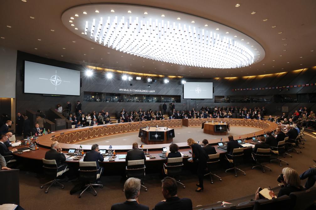 這是6月14日在比利時布魯塞爾北約總部拍攝的北約防長會現(xiàn)場。北約秘書長斯托爾滕貝格14日說,北約成員國國防部長當(dāng)天批準(zhǔn)了一項旨在由北約協(xié)調(diào)對烏克蘭軍事援助和訓(xùn)練的計劃。北約防長會13日至14日在布魯塞爾舉行。新華社記者趙丁喆攝
