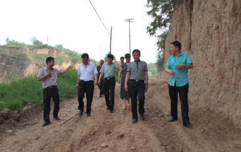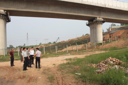 7月29日烈日炎炎,忻州氣溫高達(dá)30多度,下午16時(shí)許,忻府區(qū)區(qū)長趙志偉,副區(qū)長寧康平,忻府區(qū)國土資源局局長白蕾,解原鄉(xiāng)黨委書記丁國倉,鄉(xiāng)長王萬榮和相關(guān)部門負(fù)責(zé)人,帶著忻州市委、市政府,忻府區(qū)委、區(qū)政府對東社村村民的關(guān)懷,趕赴解原鄉(xiāng)東社村實(shí)地了解情況。區(qū)長趙志偉一行人驅(qū)車直奔現(xiàn)場,徒步來到村東南角高鐵架空橋下,認(rèn)真察看高鐵架空橋下積水形成灘涂地段和防洪渠現(xiàn)狀后,漫步爬坡而上,走到村東南土方堆放處神臺(tái)溝(地名)。親自爬上高約7、8米的土堆,沿土堆一直走到源頭察看了積水情況,經(jīng)過對現(xiàn)場地形以及土堆源頭積水情況的細(xì)致調(diào)研,一行人汗流夾背地返回村口,連口水也來不急喝就開始認(rèn)真地分析問題。