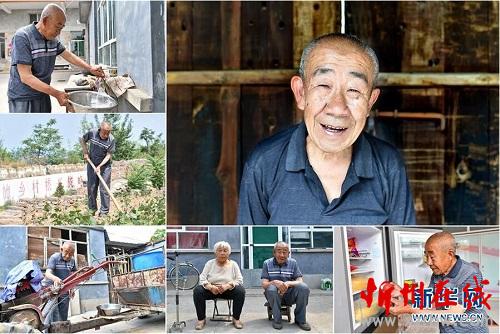 郭中其,男,1949年出生,山西省長治市潞城區(qū)常村人,全家6口人靠種地為生,因家人重病而造成生活困難。被納入建檔立卡貧困戶后,郭中其家人治病的花銷顯著減少,子女參加了免費技能培訓并找到了工作,家里的生活條件得到了改善,2017年全家脫了貧。 右上:郭中其肖像;左上:郭中其在院子里接水;左中:郭中其在田地里鋤草;左下:郭中其在擦拭拖拉機;下中:郭中其和老伴坐在院子里;下右:郭中其從冰箱里拿出西紅柿(拼版照片,6月12日攝)。 地處晉東南的山西省長治市,位于由太行山、太岳山環(huán)繞而成的上黨盆地中。在群山中、崖壁上,許多村莊自然條件惡劣,基礎(chǔ)設(shè)施落后,脫貧致富是大山深處人們的迫切心愿。 近年來,一場場脫貧攻堅戰(zhàn),在一個個深山村打響。政府全力探索脫貧路徑的同時,山區(qū)百姓因地制宜,靠自己的雙手和智慧走上致富路,交出了一份扎實的脫貧答卷。 記者在太行山、太岳山一路尋訪,記錄下多位70歲老人的生活。這些共和國的同齡人,親歷了山鄉(xiāng)的巨變,見證著長治山區(qū)脫貧攻堅偉大工程的一步步推進。 新華社記者 曹陽 攝