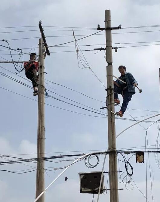 8月25日星期日,董村鎮(zhèn)電管站職工放棄休息,人員、車輛全出動(dòng),運(yùn)來新的水泥電桿,在太陽光曝曬下作業(yè),更換了傾斜開裂電桿,對線路重新進(jìn)行了整理架設(shè),徹底消除了這起安全隱患,電力職工們連口水也沒來的及喝,緊張地從上午8時(shí)許一直到中午1時(shí)許結(jié)束。這種盡職盡責(zé)忘我精神感動(dòng)著在場每一位村民,村民們紛紛豎起大拇指點(diǎn)贊。