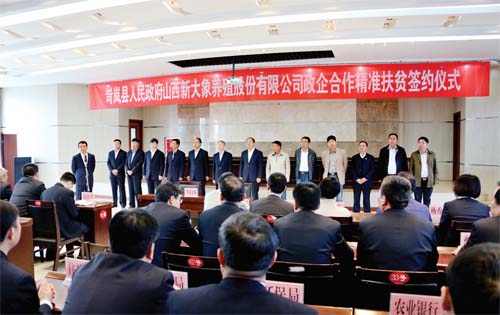 ???圖為岢嵐與山西新大象養(yǎng)殖股份有限公司政企合作精準(zhǔn)扶貧簽約儀式現(xiàn)場。尹艷 攝??