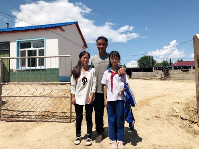 臨近中午,三年級(jí)的姑娘趙金珠放學(xué)回家,撲進(jìn)了爸爸的懷抱。記者給他們一家人合張影,趙海龍自然地伸開雙臂,緊緊地?fù)ё∑拮雍团畠?,鏡頭前三口人甜蜜微笑,一家之主趙海龍更是滿臉的自豪和幸福。