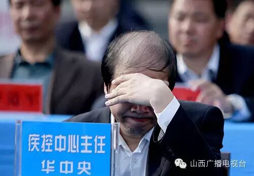 免職決定宣讀后,華中央突然用手捂住了眼睛。