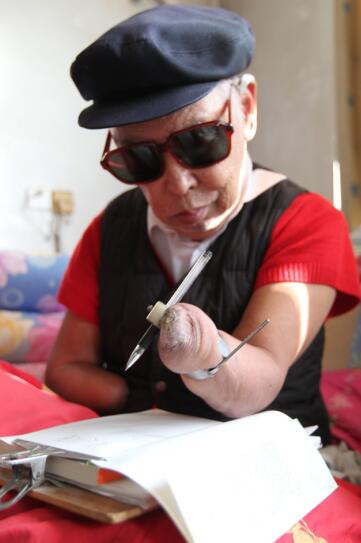 用嘴含筆寫(xiě),殘臂夾筆(抱臂)寫(xiě),鐵圈套筆寫(xiě)。整整7年。苦熬苦寫(xiě)了7年,反復(fù)修改了7遍。2000多個(gè)日日夜夜,父親翻爛了四本字典,很多時(shí)候,胳膊翻書(shū)不方便,他就用嘴唇翻,用舌頭翻。用掉半噸稿紙,終于在1996年7月,出版了33萬(wàn)字的自傳體小說(shuō)《極限人生》。