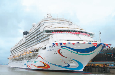 6月6日,由中國船舶外高橋造船有限公司建造的首艘國產(chǎn)大型郵輪“愛達(dá)·魔都號”在上海出塢。新華社記者 丁 汀攝