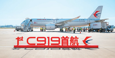 順利起飛、平穩(wěn)落地、跨過水門……5月28日,中國自主研發(fā)的大型客機(jī)C919成功完成首次商業(yè)載客飛行。在民用航空領(lǐng)域,大型客機(jī)被譽(yù)為“現(xiàn)代制造業(yè)的明珠”。其制造能力直接反映一個國家的工業(yè)水平。C919的一飛沖天讓中國人的“大飛機(jī)夢”成為現(xiàn)實(shí)。