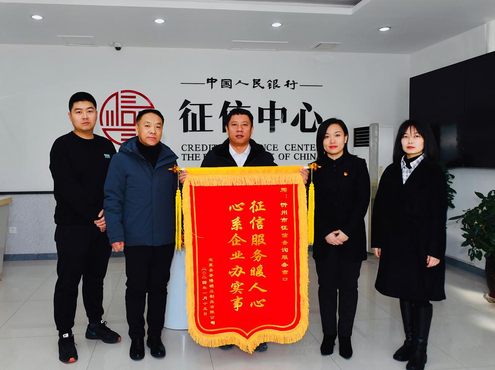 1月15日上午,定襄縣晉博鍛壓制品有限公司負(fù)責(zé)人將一面寫(xiě)有“征信服務(wù)暖人心,心系企業(yè)辦實(shí)事”的錦旗送到了人民銀行忻州市分行征信查詢服務(wù)窗口,感謝為其高效處理征信異議,幫助企業(yè)解決資金往來(lái)受阻困境。