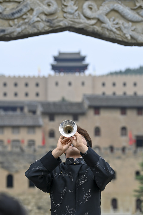 演員在湘峪古堡進(jìn)行民樂表演(7月9日攝)。新華社記者 楊晨光 攝