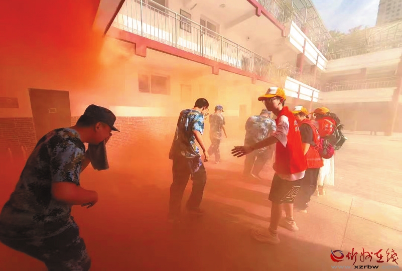 活動開始,模擬教學樓發(fā)生火災(zāi)。在濃煙環(huán)境中,學生們按照預(yù)先指定的逃生路線,在消防志愿者的引導下彎腰低頭,迅速而有序地撤離至安全地帶。在“模擬火災(zāi)實戰(zhàn)”中,同學們真切感受到了火災(zāi)的危險性,更深刻體會到了消防安全的重要性,增強了大家在面對火災(zāi)時的“實戰(zhàn)能力”。