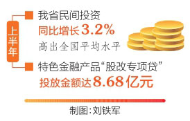 本報訊(記者晉帥妮 實習生秦一嘉)上半年我省民間投資同比增長3.2%,高出全國平均水平,占固定資產投資比重達48.6%。特色金融產品“股改專項貸”投放金額達8.68億元,政策環(huán)境優(yōu)化與融資難題破解取得積極成效。這是7月28日記者從全省民營經濟系統(tǒng)工作座談會上獲悉的。
