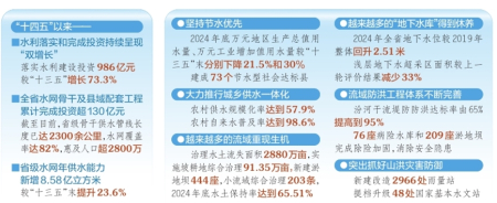 “十四五”以來,我省全力開展母親河復(fù)蘇、幸福河湖建設(shè)行動,在全國率先公布縣級以上母親河名錄,重點(diǎn)打造4條國家級、104條省級幸福河湖,優(yōu)先把各市縣母親河建設(shè)成為幸福河;“一泓清水入黃河”6大類40項(xiàng)水利工程逐步建成達(dá)效,越來越多的河流恢復(fù)了生命。全省治理水土流失面積2880萬畝,實(shí)施坡耕地綜合治理91.35萬畝、新建淤地壩444座、小流域綜合治理203條,2024年底水土保持率達(dá)到65.51%,較“十三五”末提高3.13個(gè)百分點(diǎn),越來越多的流域重現(xiàn)了生機(jī)。2024年全省地下水位較2019年整體回升2.51米,淺層地下水超采區(qū)面積較上一輪評價(jià)結(jié)果減少33%,越來越多的“地下水庫”得到了休養(yǎng)。