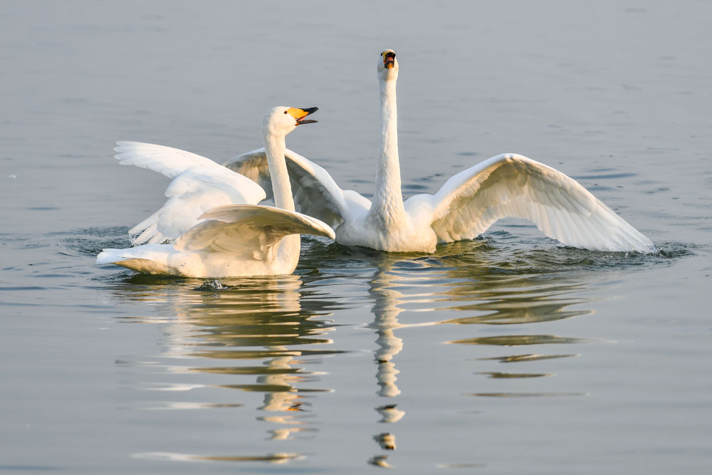 在山西平陸黃河濕地保護區(qū),一批批來自西伯利亞的野生大天鵝陸續(xù)飛抵,開始越冬。據(jù)悉,自10月底起,大天鵝已開始分批抵達黃河濕地,進入12月后數(shù)量明顯增加,目前該區(qū)域觀測到的越冬天鵝已超5000只,到明年1、2月份可達上萬只。它們悠然自得的身影,為黃河岸畔增添了一道靈動的風(fēng)景線。