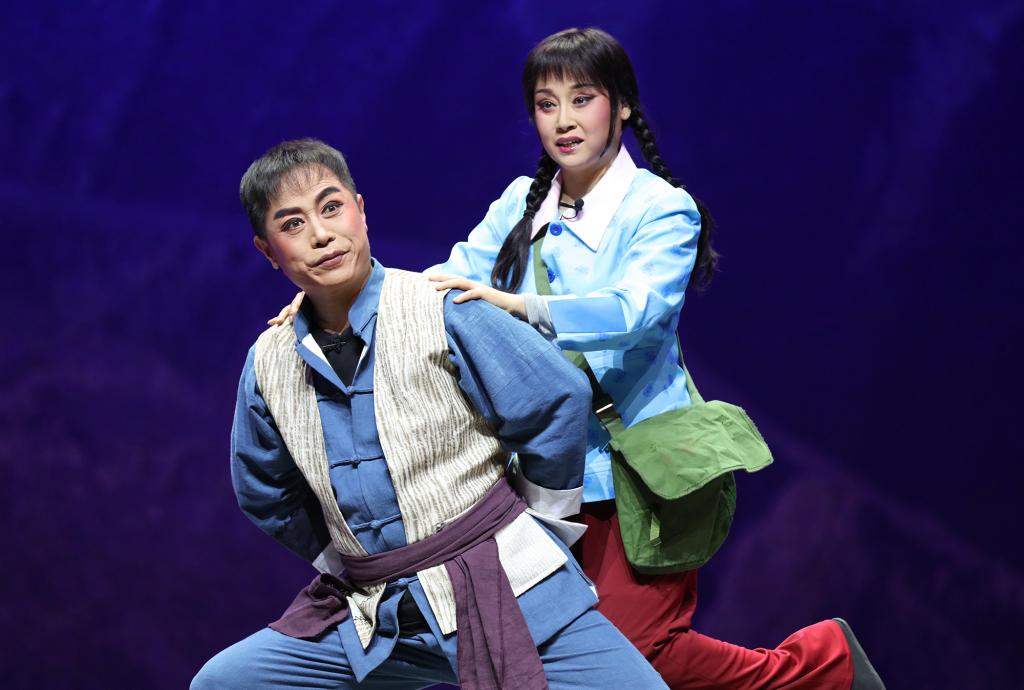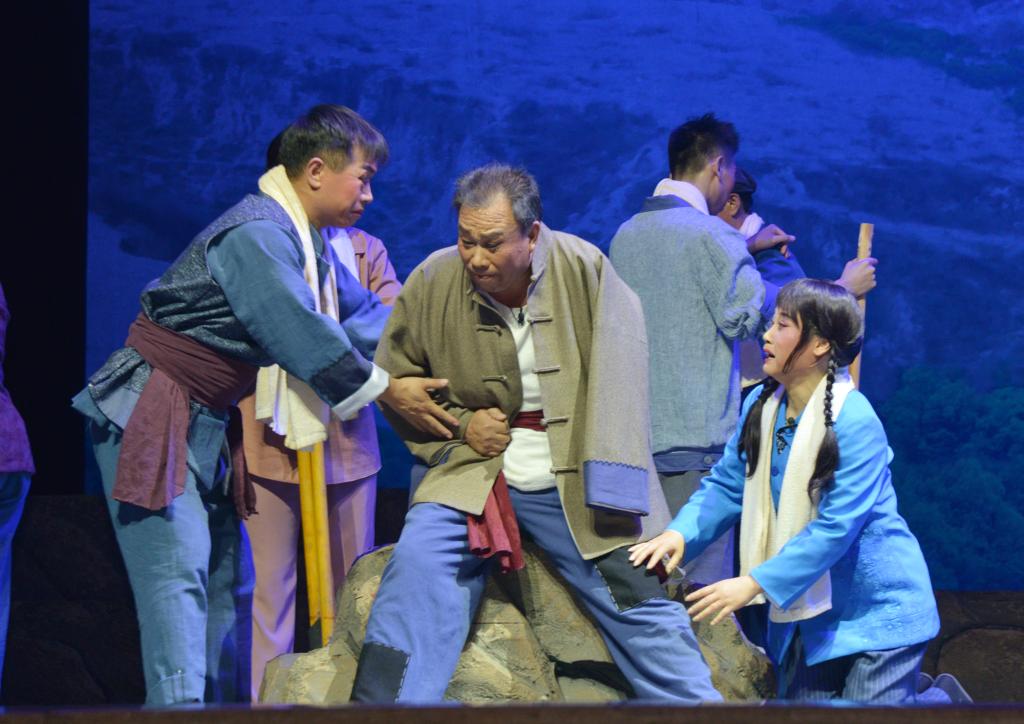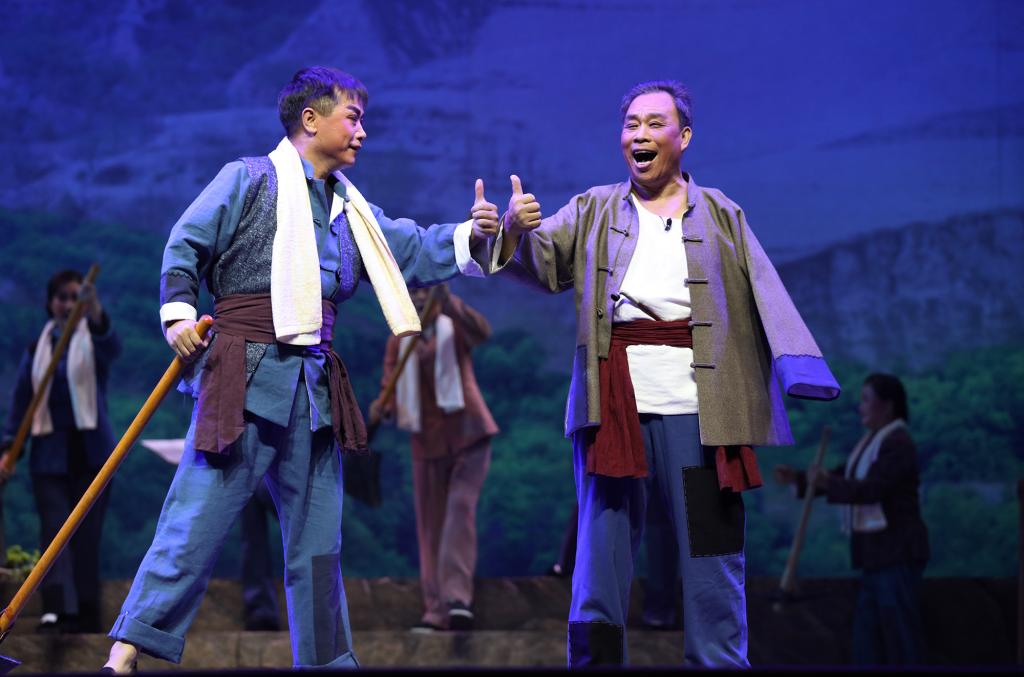 “只有讓段家灣綠起來(lái)、美起來(lái),才能富起來(lái)……”《段家灣》是一部弘揚(yáng)主旋律、深入生活、扎根人民的精品劇目,以主人公柳玉珍放棄高考,毅然回到深度貧困的家鄉(xiāng),投身脫貧攻堅(jiān)事業(yè)拉開(kāi)序幕,講述了其堅(jiān)守初心使命,扎根基層一線(xiàn),在留村任教、學(xué)醫(yī)救人、帶領(lǐng)村民脫貧致富的過(guò)程中,始終牢記共產(chǎn)黨員第一身份,用忠誠(chéng)擔(dān)當(dāng)書(shū)寫(xiě)人生答卷的動(dòng)人故事,體現(xiàn)了她心系群眾、無(wú)私奉獻(xiàn)、不懼困難的拼搏精神。該劇以北路梆子貫穿全劇,融合曲藝、舞蹈、音樂(lè)等多種舞臺(tái)藝術(shù)形式,將舞臺(tái)演繹和舞臺(tái)制作深度融合,場(chǎng)景布置和服裝設(shè)計(jì)力求還原生活真實(shí),富有鄉(xiāng)村生活質(zhì)感和泥土氣息。每一場(chǎng)表演都帶給觀眾滿(mǎn)滿(mǎn)的感動(dòng)和精神的洗禮,現(xiàn)場(chǎng)不時(shí)響起雷鳴般的掌聲。(圖為范濤 王國(guó)棟攝)
