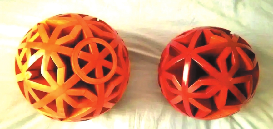 “沒用一顆釘子、一滴膠水,我們利用了榫卯技藝,讓108塊形狀各異的木構(gòu)件緊密連接,構(gòu)成一個(gè)鏤空的地球,祈盼世界團(tuán)結(jié)、人類和平。”《榫卯的宇宙》編劇、忻州王爾文玩(魯班鎖、孔明鎖)(以下簡稱“王爾文玩”)傳統(tǒng)木作技藝非物質(zhì)文化遺產(chǎn)代表性傳承人趙永功說。