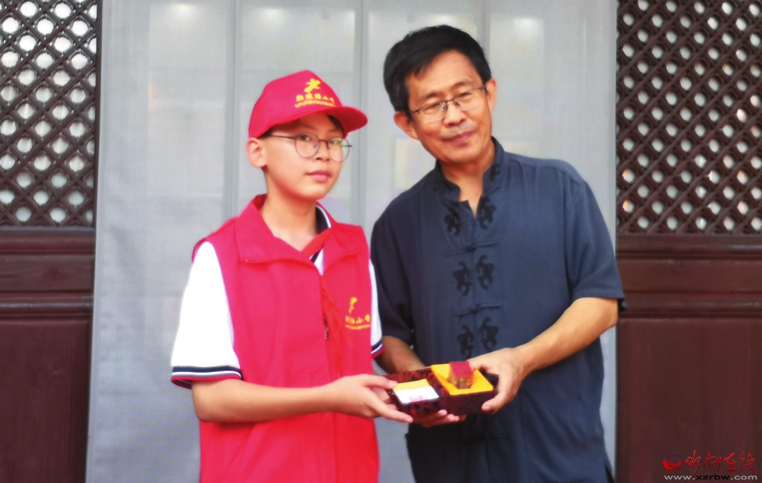 8月14日,忻府區(qū)新建路小學(xué)的史棟艇小朋友,在校長陳懷林帶領(lǐng)下,來到忻州古城秀容書院博物館,將自己精心刻制的一枚“秀容書院博物館”篆刻印章,贈送給秀容書院博物館,現(xiàn)場還舉行了一個(gè)簡單的贈送儀式。秀容書院博物館館長梁生智鄭重地接過這枚印章,并向史棟艇同學(xué)和陳校長表示了誠摯的謝意。