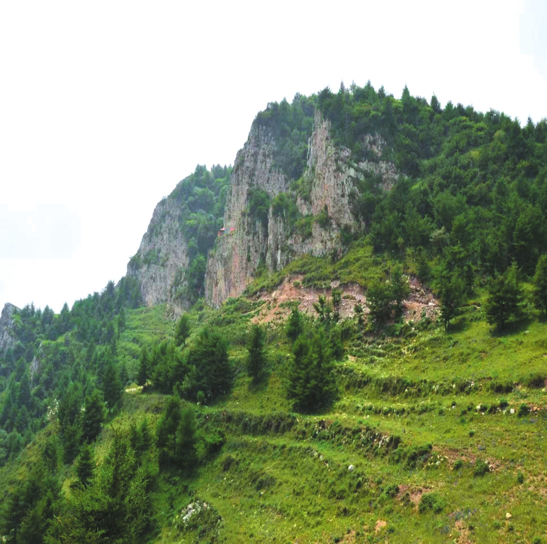 老君洞山峰的凸起點位居四山中央,奇險峻極奪人眼球,與不遠(yuǎn)處海拔2364米的水背尖遙遙相對,山西電視臺的1125差轉(zhuǎn)臺就建在上面。山中的云霧像一條白色綢帶纏繞在兩座山巒自然形成的溝壑間,為水背尖與老君洞增添了一種難以看穿的神秘色彩。