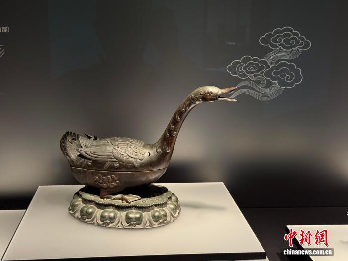 11月11日,大都會藝術博物館藏明代雁形銅熏爐在上海博物館東館展出。 中新社記者 康玉湛 攝