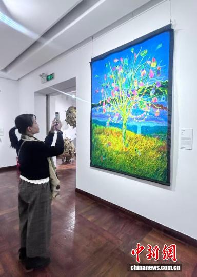 圖為觀眾拍攝代磊作品《一棵樹》。湖北美術(shù)學(xué)院供圖