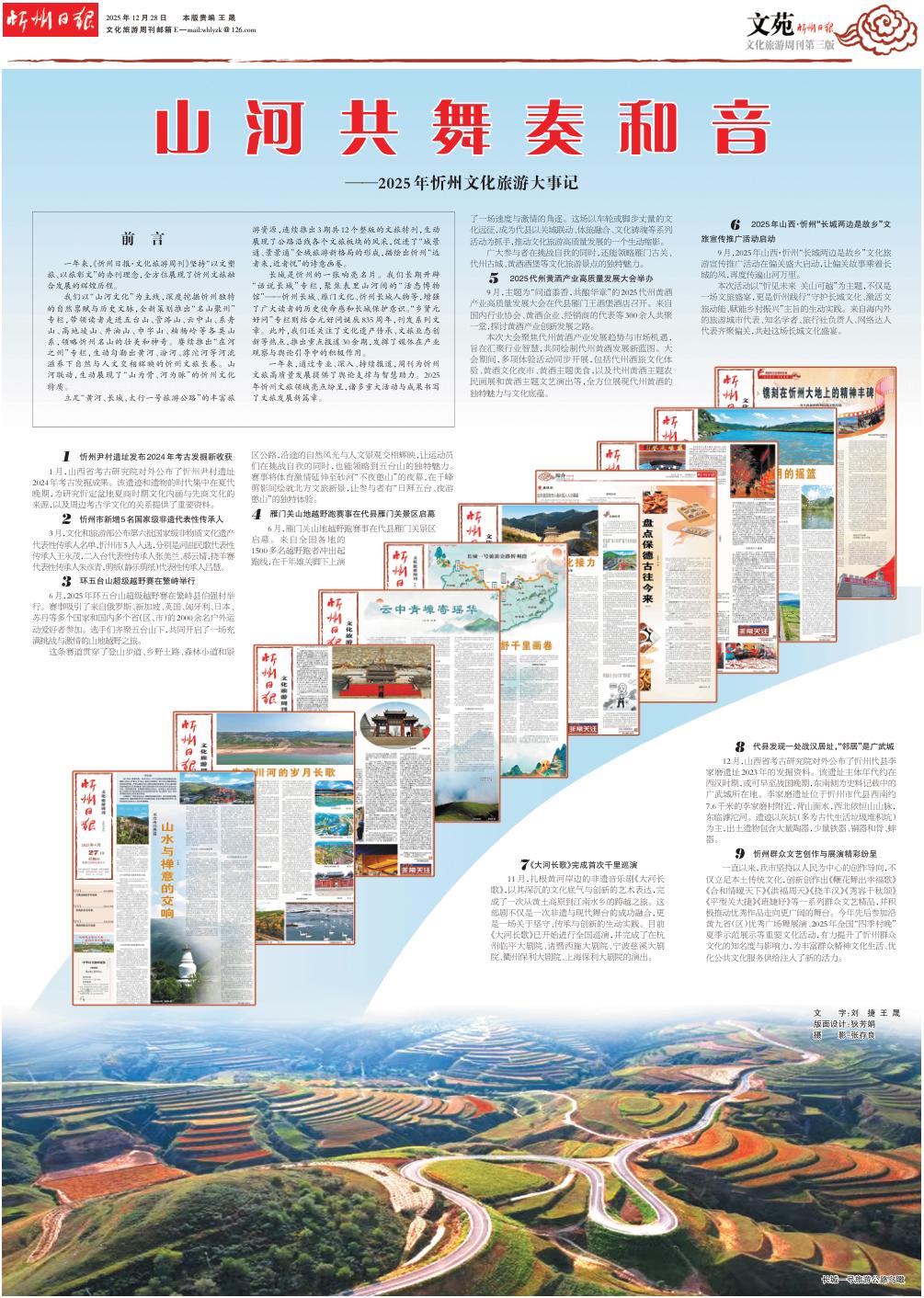 一年來(lái),通過(guò)專業(yè)、深入、持續(xù)報(bào)道,周刊為忻州文旅高質(zhì)量發(fā)展提供了輿論支撐與智慧助力。2025年忻州文旅領(lǐng)域亮點(diǎn)紛呈,諸多重大活動(dòng)與成果書(shū)寫了文旅發(fā)展新篇章。