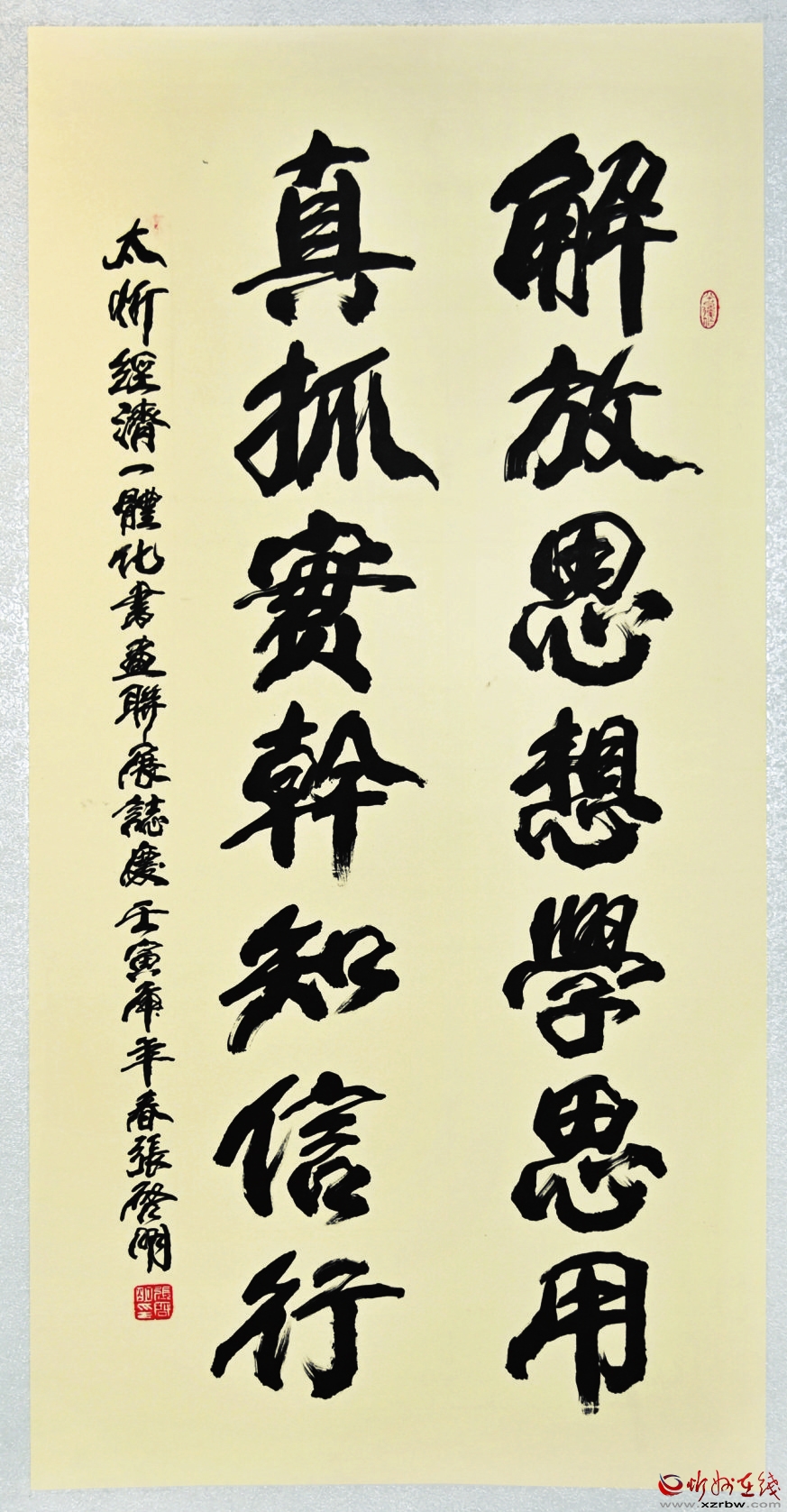 據(jù)悉,今年5月,忻州市文聯(lián)面向全市書畫界征集主題書畫作品,同時向書畫名家進行約稿,征集書法作品271件,美術(shù)作品30件。經(jīng)過公正嚴格組織評選,最后入選展覽作品80余件。作品藝術(shù)形式多樣,諸體兼?zhèn)?,?gòu)思新穎,具有較高的思想性與藝術(shù)性,從書法繪畫的視野,展現(xiàn)出太忻一體化經(jīng)濟區(qū)建設(shè)的進程,充盈著高雅的藝術(shù)格調(diào)和鮮活的時代氣息。
