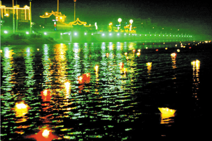 中元節(jié)這一天也有放河燈的習(xí)俗,最早源于印度佛教,傳入中國(guó),是由寺院興起,起初有盂蘭盆會(huì),在寺院里,誦經(jīng)供食,焚化紙船,謂之法船,可以“渡出冥孤獨(dú)之魂”,也是一種宗教儀式。后來這種形式,逐漸傳入民間社會(huì),有了在河流中放河燈的習(xí)俗。試想天上人間,天上明月高空,繁星點(diǎn)點(diǎn),地下一排排的紙船,在暗夜的黃河流水中猶如萬點(diǎn)螢光,向著遙遠(yuǎn)的神秘方向漂流,讓人產(chǎn)生一種無限的想象,因此,在中元節(jié)放河燈,就是自己和心靈的一種對(duì)話,也是活著的人們對(duì)逝去的人們的一種懷念方式。當(dāng)然河曲河燈節(jié),在祭祖、祭禹的同時(shí),也加入了特定群體。那些在黃河水患中離去的人,那些在戰(zhàn)亂中逝去的人,那些在走西口謀生中失蹤的人,都成為被祭奠的亡靈,體現(xiàn)了其節(jié)日的地域性。