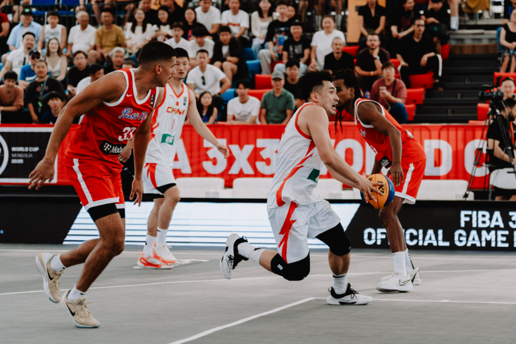 中國(guó)隊(duì)球員在對(duì)陣波多黎各隊(duì)的比賽中突破。圖片來(lái)自國(guó)際籃聯(lián)官網(wǎng)