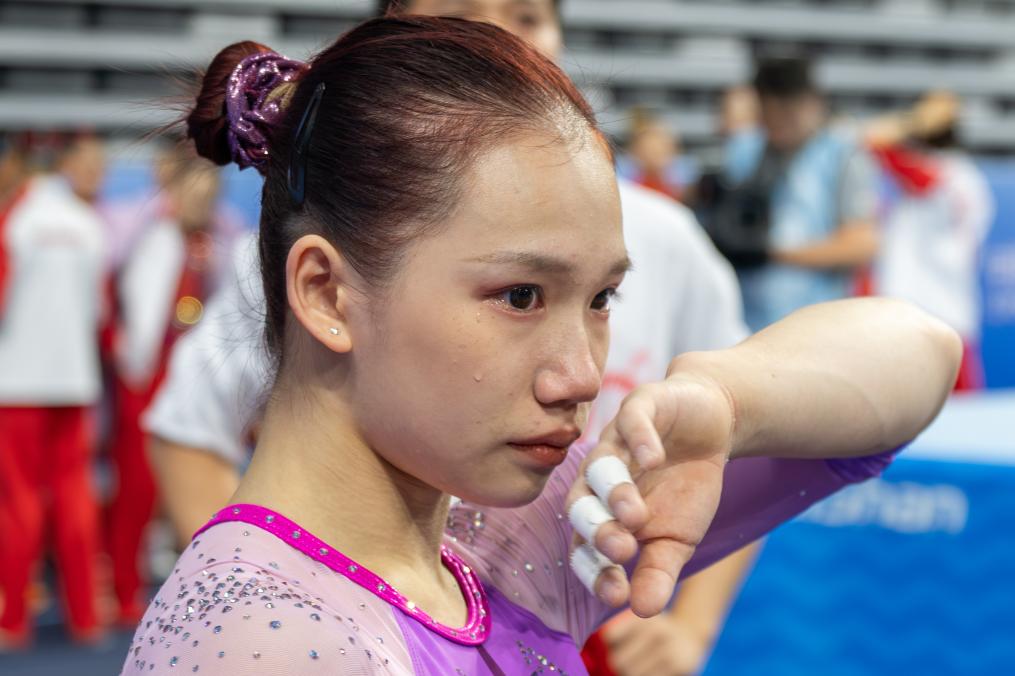 11月13日,廣東隊選手歐鈺珊在比賽后落淚。新華社記者 杜子璇 攝