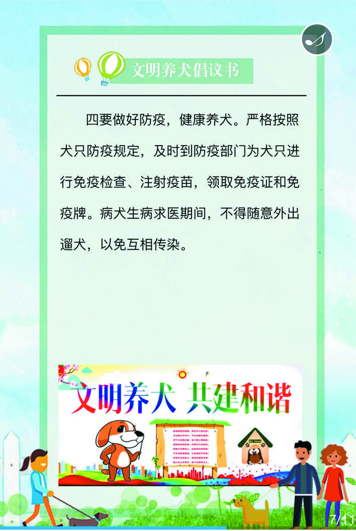 在宣傳活動(dòng)中,民警深入街道、小區(qū)、商鋪等人員密集場(chǎng)所,在宣傳欄懸掛文明養(yǎng)犬宣傳標(biāo)語(yǔ)、張貼文明養(yǎng)犬倡議書(shū)等宣傳資料,向轄區(qū)居民詳細(xì)講解《忻州市養(yǎng)犬管理?xiàng)l例》《文明養(yǎng)犬公告》的具體內(nèi)容,引導(dǎo)養(yǎng)犬群眾主動(dòng)辦理養(yǎng)犬登記證、出門(mén)為犬只佩戴犬牌、定期為犬只注射疫苗,做到依法養(yǎng)犬、文明養(yǎng)犬、衛(wèi)生養(yǎng)犬、健康養(yǎng)犬、安全養(yǎng)犬。活動(dòng)中,該局共懸掛宣傳標(biāo)語(yǔ)50條,張貼文明養(yǎng)犬倡議書(shū)500份,向群眾發(fā)放宣傳資料3500人/份。