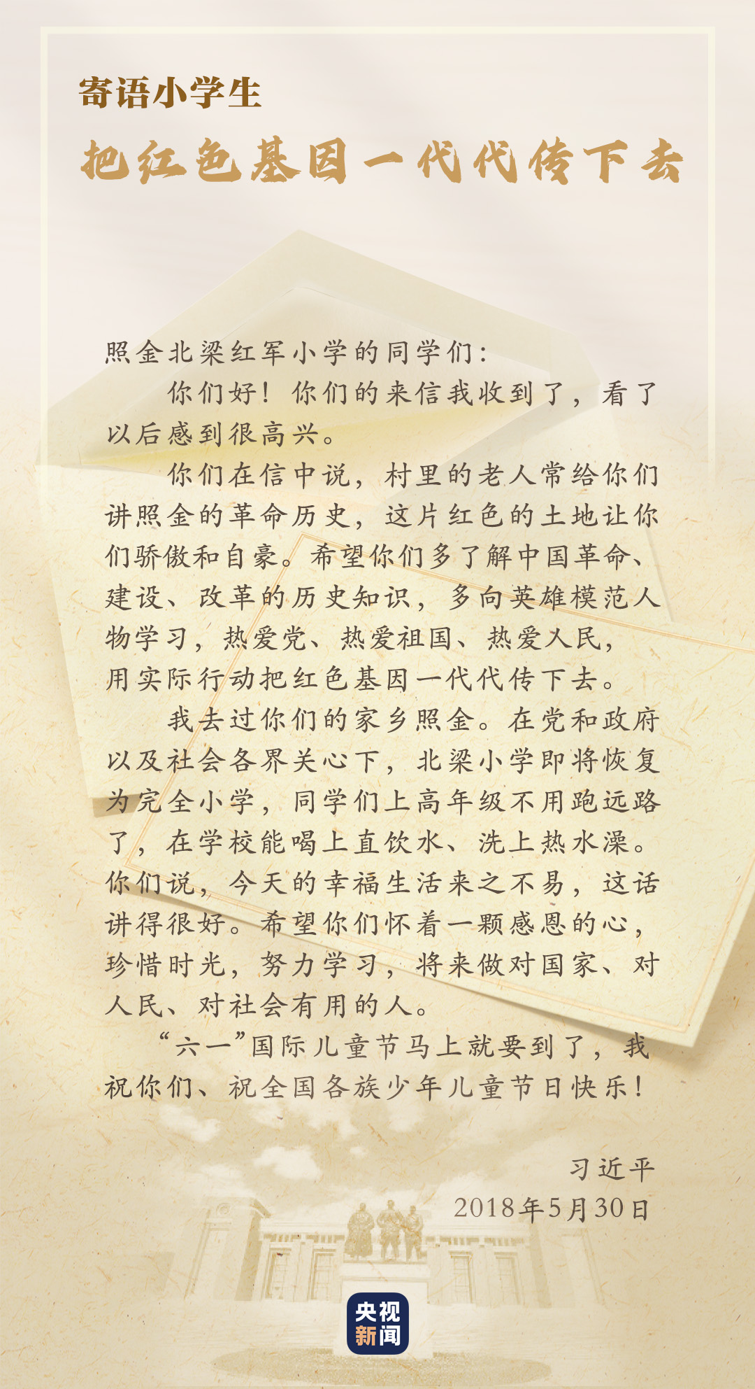 校舍變新了,師資變強(qiáng)了,不變的是代代相傳的紅色基因??倳?shū)記的回信,激勵(lì)著這里的孩子傳承紅色基因,回報(bào)社會(huì),用光熱溫暖更多人,把愛(ài)傳遞出去。