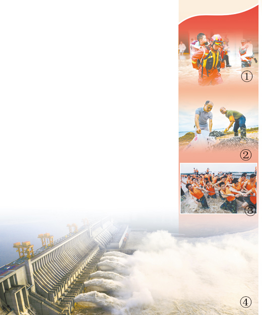 圖①:2020年6月,重慶涪陵區(qū)龍?zhí)舵?zhèn)遭遇暴雨,消防等救援力量營(yíng)救被困人員。肖樂(lè)峰攝(人民視覺(jué)) 圖②:2019年7月,鄱陽(yáng)湖水位全面超警,干部群眾在江西都昌縣南溪圩堤,全力加固堤壩。傅建斌攝(人民視覺(jué)) 圖③:1998年8月,黑龍江大慶市遭受嫩江、松花江洪水,人民解放軍奮戰(zhàn)在抗洪搶險(xiǎn)一線。小 燕攝(人民視覺(jué)) 圖④:2020年8月,長(zhǎng)江2020年第4號(hào)洪水形成,三峽水利樞紐攔洪削峰。鄭 坤攝(人民視覺(jué)) 廣大干部群眾和人民解放軍、武警官兵堅(jiān)決響應(yīng)黨和政府號(hào)召,發(fā)揚(yáng)不怕累苦、不怕疲勞、不怕?tīng)奚木穸分?,?jiān)守在防汛抗洪救災(zāi)第一線,涌現(xiàn)了許多先進(jìn)典型和感人事跡,展現(xiàn)了中國(guó)人民眾志成城、頑強(qiáng)拼搏、敢于勝利的英雄氣概,書(shū)寫了洪水無(wú)情人有情的人間大愛(ài)。 ——習(xí)近平總書(shū)記2020年8月在安徽考察時(shí)強(qiáng)調(diào) “共產(chǎn)黨員跟我上!”“洪水不退人不退!” 1998年夏天,氣候異常,暴雨頻發(fā),長(zhǎng)江出現(xiàn)全流域性大水,東北嫩江、松花江也暴發(fā)特大洪水。千鈞一發(fā)之際,在黨中央堅(jiān)強(qiáng)領(lǐng)導(dǎo)下,全黨、全軍和全國(guó)人民緊急行動(dòng),廣大黨員干部群眾同解放軍指戰(zhàn)員、武警官兵一起,團(tuán)結(jié)奮戰(zhàn),力挽狂瀾,同洪水進(jìn)行了驚心動(dòng)魄的殊死搏斗。在這場(chǎng)偉大的抗洪搶險(xiǎn)斗爭(zhēng)中,形成了“萬(wàn)眾一心、眾志成城,不怕困難、頑強(qiáng)拼搏,堅(jiān)韌不拔、敢于勝利”的偉大抗洪精神,成為中國(guó)人民彌足珍貴的精神財(cái)富。 大江奔涌,抗洪精神接續(xù)傳承。黨的十八大以來(lái),在以習(xí)近平同志為核心的黨中央堅(jiān)強(qiáng)領(lǐng)導(dǎo)下,我們成功應(yīng)對(duì)了長(zhǎng)江、嫩江、松花江、黑龍江等流域大洪水,保障了人民群眾生命安全、大中城市和重要基礎(chǔ)設(shè)施防洪安全,為經(jīng)濟(jì)社會(huì)平穩(wěn)有序發(fā)展提供了堅(jiān)實(shí)支撐。 習(xí)近平總書(shū)記指出:“廣大干部群眾和人民解放軍、武警官兵堅(jiān)決響應(yīng)黨和政府號(hào)召,發(fā)揚(yáng)不怕累苦、不怕疲勞、不怕?tīng)奚木穸分荆瑘?jiān)守在防汛抗洪救災(zāi)第一線,涌現(xiàn)了許多先進(jìn)典型和感人事跡,展現(xiàn)了中國(guó)人民眾志成城、頑強(qiáng)拼搏、敢于勝利的英雄氣概,書(shū)寫了洪水無(wú)情人有情的人間大愛(ài)?!?/p> 不怕困難、頑強(qiáng)拼搏,共產(chǎn)黨員這個(gè)共同的名字在驚濤駭浪中叫響 1998年8月,江西九江市新港鎮(zhèn)江磯村遭遇洪水。 管涌、滲水、滑坡。時(shí)任江磯村黨支部書(shū)記陳申桃一次次跳入水中,夯土石、搏風(fēng)浪、堵潰口,排除大小險(xiǎn)情100多處——“水不退,不離堤?!?/p> 2020年夏天,江磯村再遇洪災(zāi)。危急時(shí)刻,陳申桃的兒子、防汛抗洪黨員突擊隊(duì)成員陳建挑起重?fù)?dān),加入搶險(xiǎn)隊(duì)伍,和父親并肩護(hù)堤——“有險(xiǎn)情,咱就在?!?/p> 一個(gè)個(gè)緊要關(guān)頭,一代代共產(chǎn)黨員挺身而出。抗洪精神在一次次江河安瀾、百姓安居中錘煉鑄就。 這是不畏艱險(xiǎn)、沖鋒陷陣的拼搏精神。 “黨員跟我上!”1998年7月,江西鄱陽(yáng)縣磨刀石鄉(xiāng),洪水沖破圩堤,時(shí)任北關(guān)村黨支部書(shū)記胡義和帶著大家跳入水中,用身軀壓住沙袋,筑起一道堅(jiān)固的防洪墻。 像胡義和一樣,九八抗洪期間,長(zhǎng)江沿線上堤搶險(xiǎn)的干部群眾高峰時(shí)達(dá)670多萬(wàn)人,縣級(jí)以上領(lǐng)導(dǎo)干部1.5萬(wàn)多人。2016年抵御長(zhǎng)江流域洪水,湖北、湖南、江西、安徽、江蘇等地廣大干部群眾齊上陣,累計(jì)投入抗洪搶險(xiǎn)人員1749萬(wàn)人次。 一次次洪水肆虐,總有黨員干部帶領(lǐng)群眾,不顧安危,不舍晝夜,用身軀抵擋滾滾濁浪,用生命守護(hù)堤防安全。 這是守土有責(zé)、履職盡責(zé)的擔(dān)當(dāng)精神。 “守大堤就是守生命線?!苯骶沤胁裆^(qū)江洲鎮(zhèn)黨委書(shū)記陳世超說(shuō),江洲鎮(zhèn)四面環(huán)江,每逢汛期,黨員干部全體到崗,全力巡堤。全鎮(zhèn)設(shè)立171座防汛哨所,安排專班24小時(shí)巡堤,確保萬(wàn)無(wú)一失。 “有散浸,快來(lái)人!”2016年7月的一個(gè)深夜,湖北嘉魚(yú)縣渡普鎮(zhèn),正在東湖堤防上值守的葛慶彪聽(tīng)到呼喊,迅速趕往現(xiàn)場(chǎng),和村民們一起填碎石、壓彩條布,奮戰(zhàn)一整夜,成功化解險(xiǎn)情。每到汛期葛慶彪總會(huì)堅(jiān)守大堤。 每年汛前,國(guó)家防總都組織通報(bào)全國(guó)各省防汛抗旱防臺(tái)風(fēng)的行政責(zé)任人和大江大河重點(diǎn)工程的行政責(zé)任人,督促落實(shí)防汛責(zé)任。從大江大河,到重點(diǎn)水利工程、重點(diǎn)防洪城市,再到中小河流,責(zé)任層層壓實(shí),防汛抗洪一線,各級(jí)黨員干部巡堤、值守,扛起重任。 這是百折不撓、敢于勝利的奮斗精神。 “一定要堵上口子!”1998年7月底,在湖南岳陽(yáng)市云溪區(qū)陸城鎮(zhèn)新港村,長(zhǎng)江大堤外坡發(fā)生坍塌,時(shí)任村黨支部書(shū)記戴勝生一聲令下,黨員干部紛紛跳進(jìn)急流,激戰(zhàn)洪水。 “趕快清理閘門!”今年7月,臺(tái)