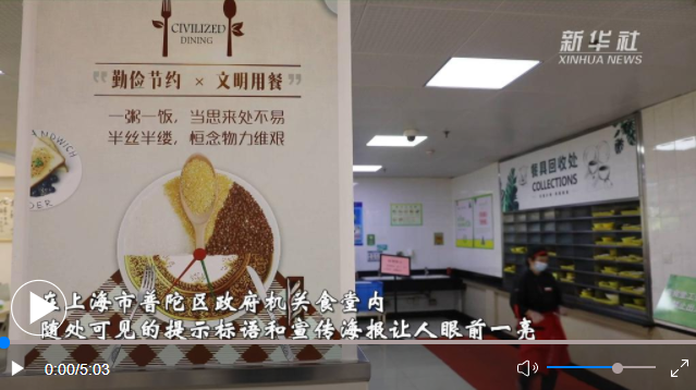 “點菜點少、不夠再添”“光盤行動、從我做起”“厲行節(jié)約、反對浪費”……在上海市普陀區(qū)政府機關食堂內(nèi),隨處可見的提示標語和宣傳海報讓人眼前一亮。