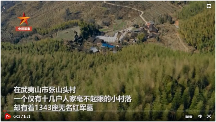 福建張山頭村竹林中,有1343座無名紅軍墓,每座墓僅一根紅飄帶、一個(gè)編號(hào)做標(biāo)記。革命戰(zhàn)爭年代,這里曾是閩北蘇區(qū)紅色首府所在地的中心地帶,不少傷病員在村里的紅軍中醫(yī)院療養(yǎng)。敵人“圍剿”,藥品不足,斷米斷菜,很多將士犧牲了,村民就把他們?cè)嵩卺t(yī)院后方,3塊青磚做墓門。為保護(hù)家人,這些紅軍沒有留下名字……(胡渝 任超 張馨尹)