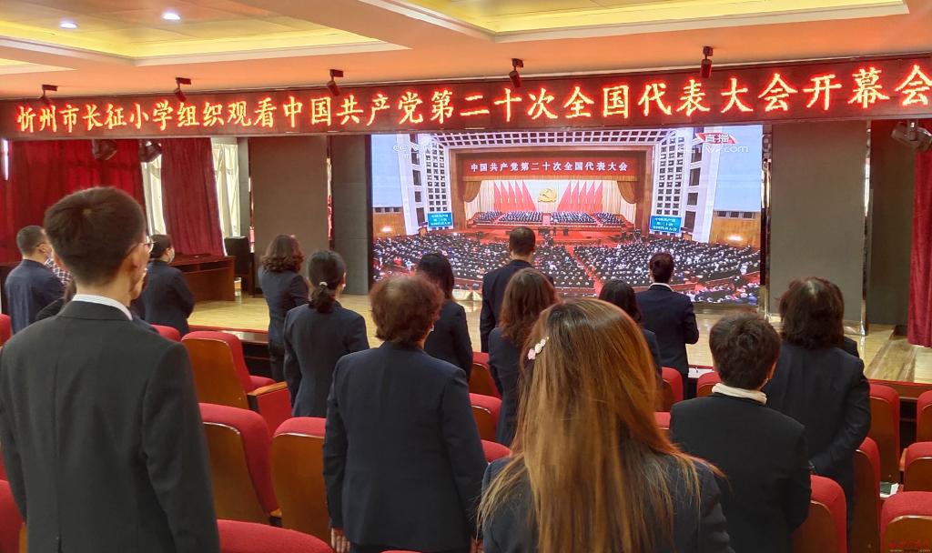 忻州市長(zhǎng)征小學(xué)組織教職員工收看。馮偉倫 攝
