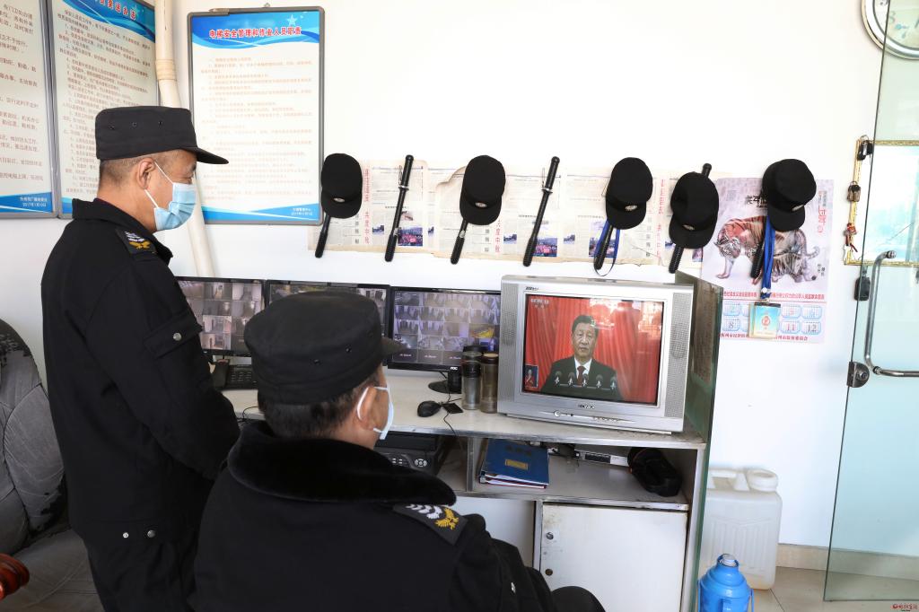 廣電大樓保安觀看大會(huì)。范濤 攝