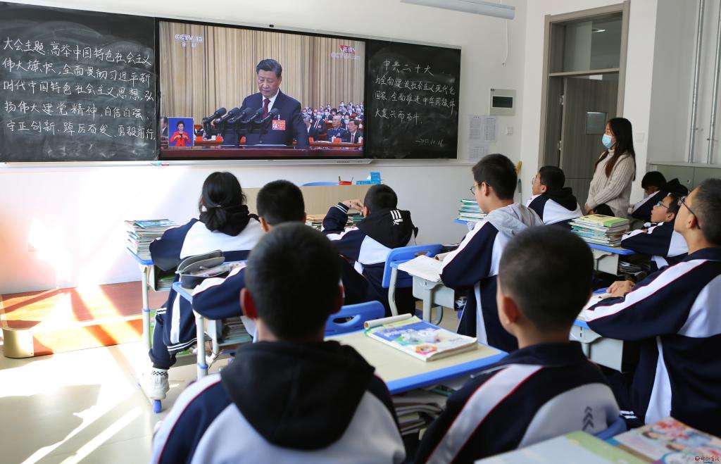 忻州市第一中學(xué)的校園處處洋溢著歡快、自豪的氣氛,師生們通過不同渠道,共同見證著這一歷史時(shí)刻。看完直播后,教師劉津帆意猶未盡。她說:“前不久,我們剛剛迎來建校120周年華誕,如今,又喜迎黨的二十大勝利召開,心中的歡欣鼓舞、自豪之情真是無以言表。作為一名人民教師,要始終牢記為黨育人、為國(guó)育才的光榮使命,堅(jiān)決執(zhí)行黨中央的教育方針政策,培根鑄魂,啟智潤(rùn)心,培養(yǎng)德智體美勞全面發(fā)展的社會(huì)主義建設(shè)者和接班人?!?/p>
