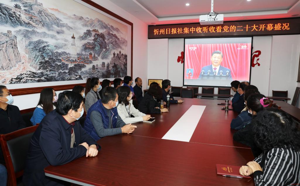 在兩個(gè)小時(shí)的時(shí)間里,市委宣傳部新聞科科長(zhǎng)張國(guó)彥聚精會(huì)神地收看著二十大開幕直播,隨身攜帶的筆記本上記滿了要點(diǎn)?!罢娴奶?dòng)了。黨的二十大是在全黨全國(guó)各族人民邁上全面建設(shè)社會(huì)主義現(xiàn)代化國(guó)家新征程、向第二個(gè)百年奮斗目標(biāo)進(jìn)軍的關(guān)鍵時(shí)刻召開的一次十分重要的大會(huì)。今后,要切實(shí)把學(xué)習(xí)宣傳貫徹黨的二十大精神作為首要政治任務(wù),在學(xué)懂、弄通、做實(shí)上下功夫,在帶頭學(xué)、促進(jìn)學(xué)、深入學(xué)上下功夫,用黨的二十大精神統(tǒng)一思想、凝聚力量,統(tǒng)攬全局、謀劃工作,為全方位推動(dòng)忻州高質(zhì)量發(fā)展作出自己應(yīng)有的貢獻(xiàn)?!?/p>