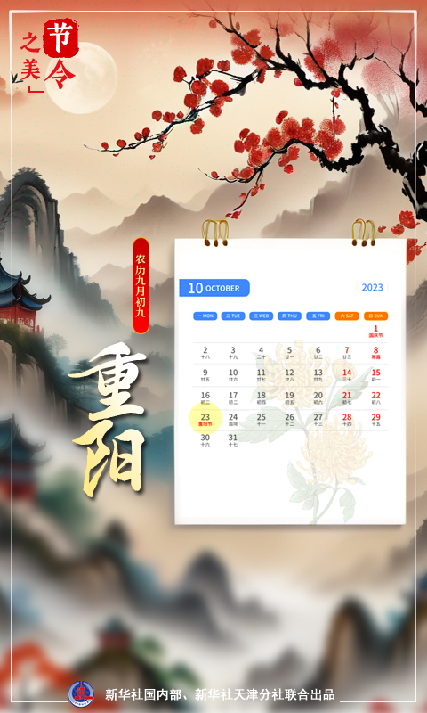 新華社天津10月22日電(記者周潤健)“九日黃花酒,登高會昔聞。”10月23日,農歷九月初九,重陽節(jié)。歲歲重陽,今又重陽。農歷九月初九緣何是重陽?其中蘊含著怎樣的“數(shù)字密碼”?