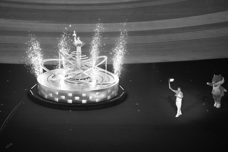 當晚,“塞上祥云托起的巨幅畫卷”在高科技下展現了90分鐘的精彩,呈現了石窟文化、絲路文化、長城文化、黃河文化、太行文化、紅色文化等山西深厚的歷史文化底蘊。開幕式接近尾聲,全場變暗,6位火炬手在一束追光中接連完成了火炬?zhèn)鬟f。