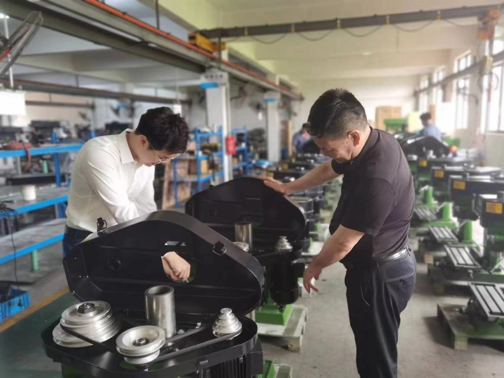 受疫情影響,2021年外貿(mào)企業(yè)訂單量隨著海運放緩、海外需求下降而減少。生產(chǎn)閑下來了,但繆繼云和兒子繆帥濤對產(chǎn)品改良的思考沒有停止。在不斷調(diào)試臺鉆時,他們發(fā)現(xiàn),調(diào)速必須動手換皮帶,“為什么不能像調(diào)收音機一樣調(diào)動速率呢?”兩人一商量,立即開始畫草圖,接著去銀行貸款投入模具開發(fā)。