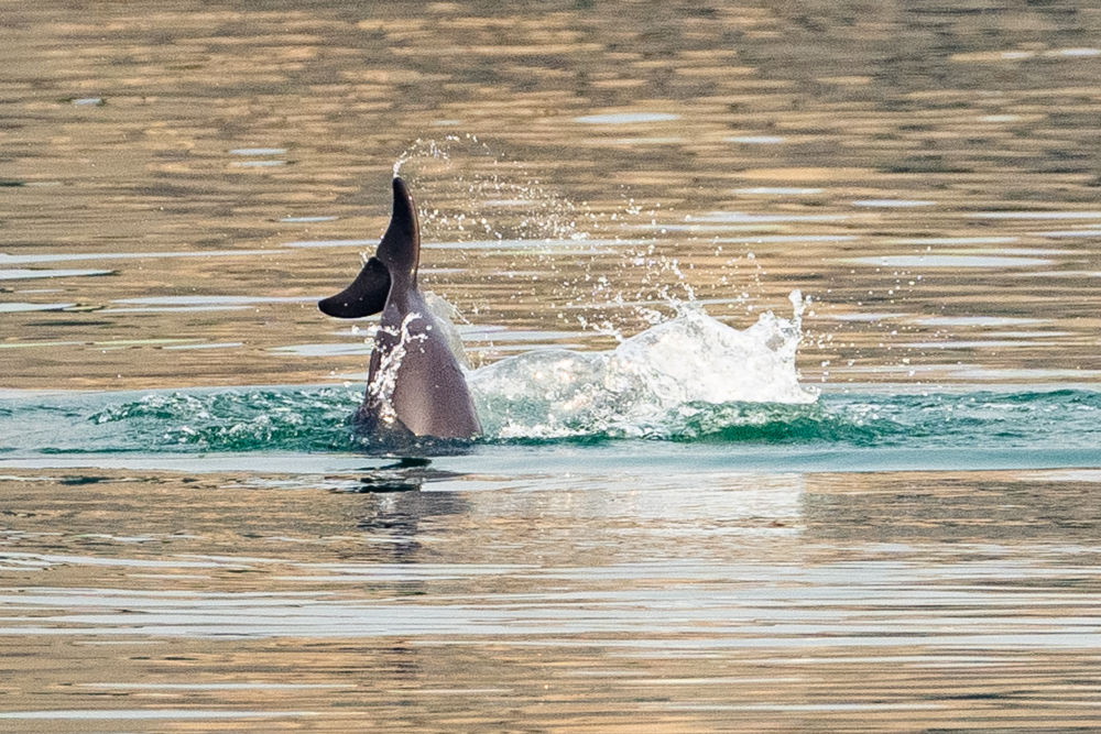 在湖北省宜昌市江邊,長江江豚在水中嬉戲(2023年2月27日攝)。根據(jù)農(nóng)業(yè)農(nóng)村部2月28日公布的2022年長江江豚科學(xué)考察結(jié)果,長江江豚種群數(shù)量為1249頭。與2017年上一次科學(xué)考察相比,江豚數(shù)量出現(xiàn)了止跌回升的歷史性轉(zhuǎn)折。新華社記者 肖藝九 攝