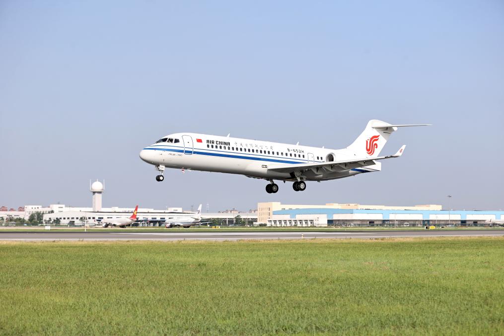 天津東疆以租賃形式交付的第2000架飛機降落在天津濱海國際機場。新華社記者 趙子碩 攝