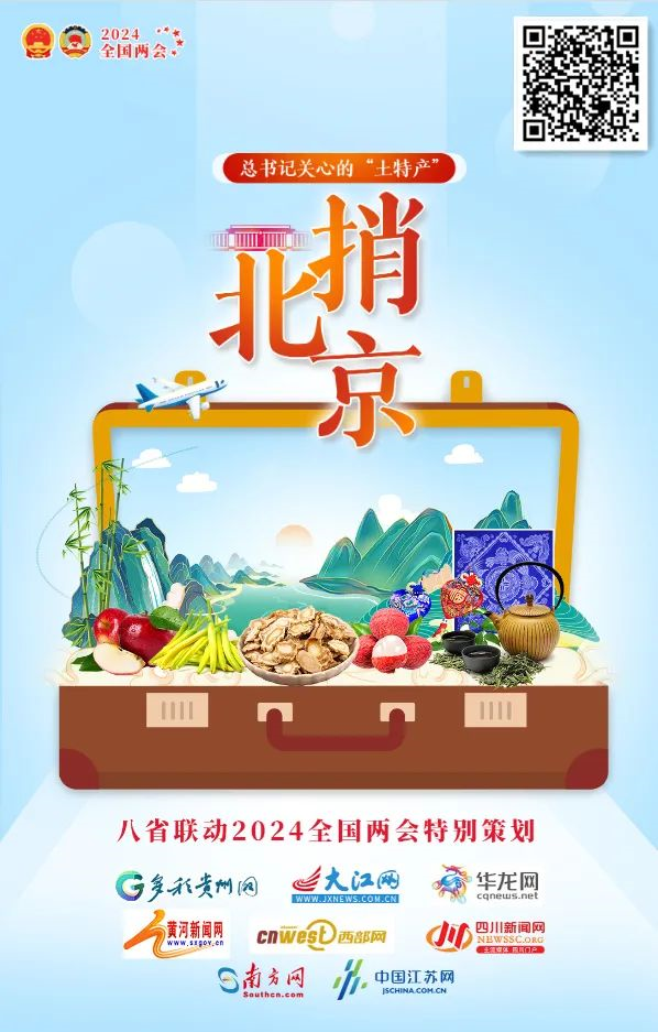 2024年全國兩會(huì)召開之即,多彩貴州網(wǎng)、西部網(wǎng)、華龍網(wǎng)、四川新聞網(wǎng)、中國江蘇網(wǎng)、黃河新聞網(wǎng)、大江網(wǎng)、南方網(wǎng)八省市媒體聯(lián)合推出《總書記關(guān)心的“土特產(chǎn)”捎北京》。