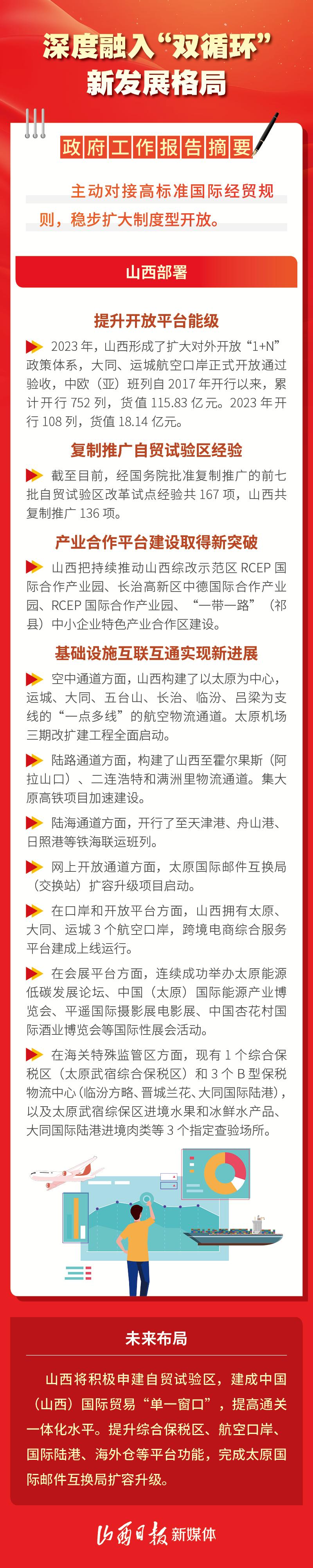 當(dāng)前,山西正堅(jiān)定不移推進(jìn)更高水平對(duì)外開(kāi)放,著力推進(jìn)優(yōu)化開(kāi)放布局和基礎(chǔ)設(shè)施建設(shè)。一組圖解,看山西如何打造內(nèi)陸地區(qū)對(duì)外開(kāi)放新高地、繪出開(kāi)放奮進(jìn)新畫(huà)卷。