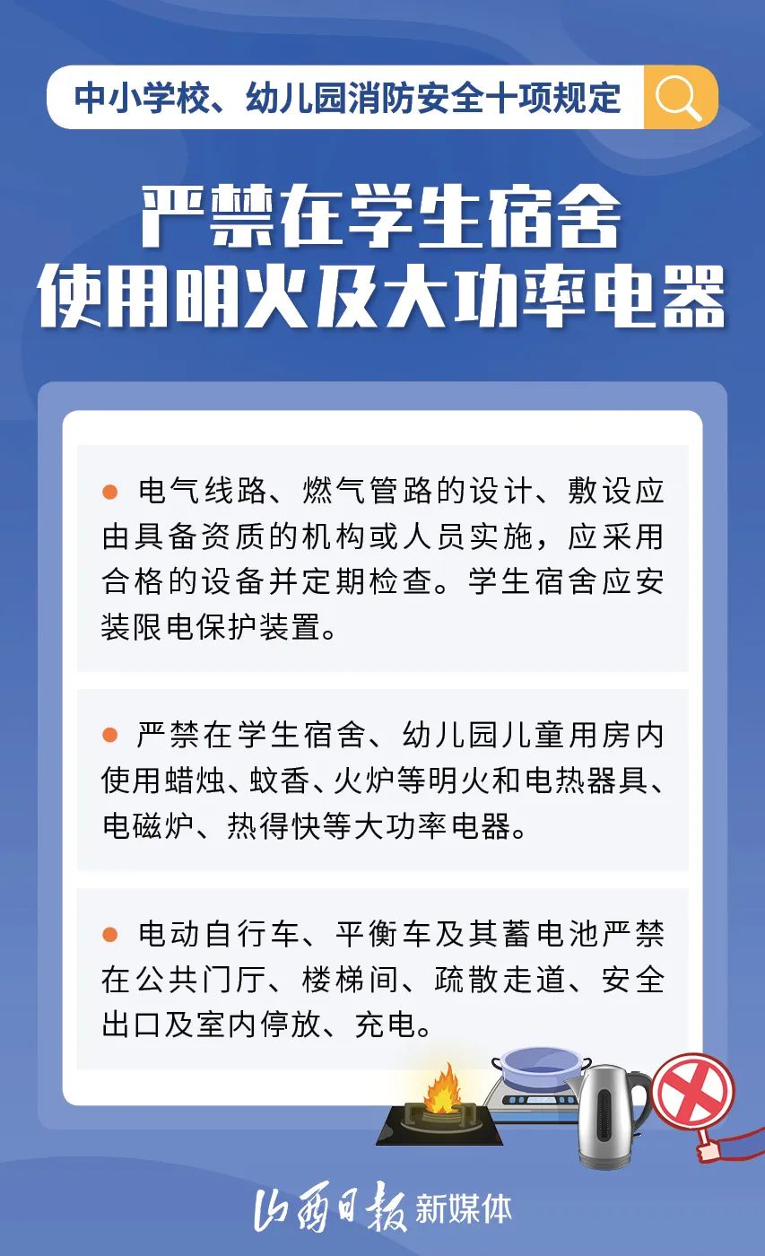 為加強(qiáng)中小學(xué)校、幼兒園消防安全管理,近日,教育部、國家消防救援局研究制定了《中小學(xué)校、幼兒園消防安全十項(xiàng)規(guī)定》,具體規(guī)定內(nèi)容如下。