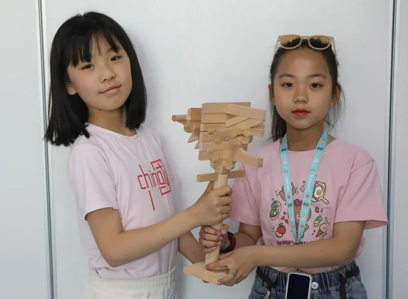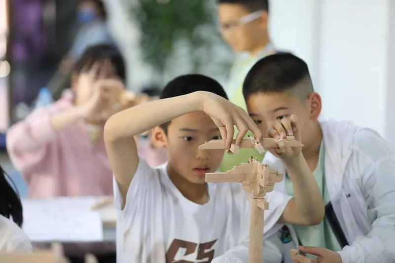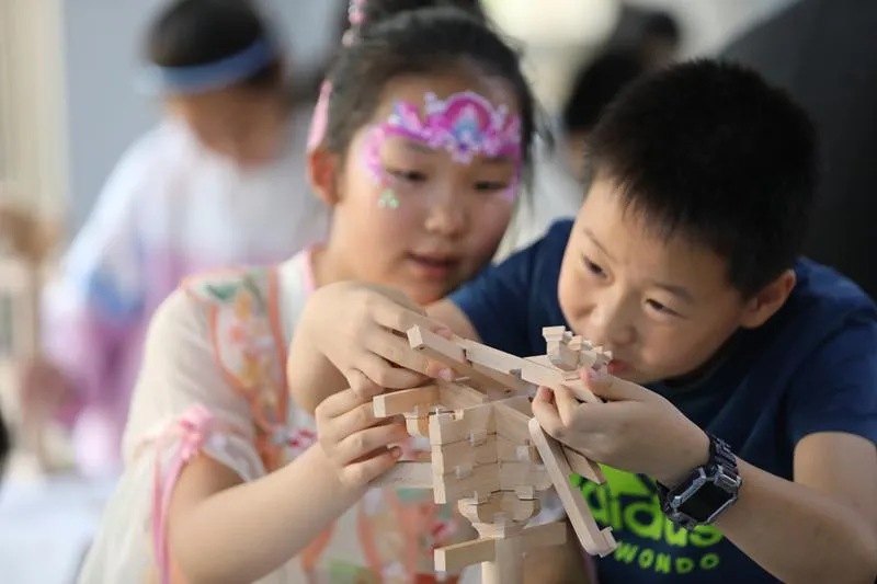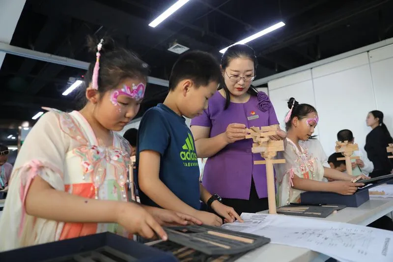 ▲動(dòng)手體驗(yàn)唐代斗拱的搭建