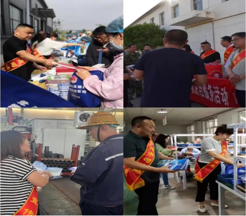 為創(chuàng)優(yōu)法治化營(yíng)商環(huán)境,為企業(yè)提供精準(zhǔn)優(yōu)質(zhì)法治服務(wù),2024年6月4日至28日,忻州市司法行政系統(tǒng)組織開(kāi)展“送法進(jìn)企業(yè)”暨優(yōu)化營(yíng)商環(huán)境專(zhuān)項(xiàng)法治服務(wù)活動(dòng)?;顒?dòng)主題為“進(jìn)企業(yè) 送法治 護(hù)營(yíng)商”,市縣兩級(jí)法律服務(wù)團(tuán)吸收優(yōu)秀律師、公證、鑒定、仲裁、調(diào)解等法律服務(wù)工作者,共同深入9縣12企,市司法局由黨組書(shū)記、局長(zhǎng)王玫帶隊(duì),開(kāi)展專(zhuān)業(yè)鎮(zhèn)企業(yè)(7個(gè))和雜糧企業(yè)(5個(gè))專(zhuān)題法治服務(wù)。做到專(zhuān)業(yè)鎮(zhèn)和雜糧代表性企業(yè)全覆蓋,助力民營(yíng)企業(yè)防范和化解法律風(fēng)險(xiǎn),提升企業(yè)經(jīng)營(yíng)者和職工法律素養(yǎng),以法治之力護(hù)航民營(yíng)企業(yè)高質(zhì)量發(fā)展。 一、開(kāi)展法律宣講 法律服務(wù)團(tuán)向企業(yè)管理人員及職工發(fā)放《憲法》500本、《民法典》以及《民法典進(jìn)企業(yè)》10000本、《合同法》5000本、《山西省優(yōu)化營(yíng)商環(huán)境條例》4000本、以及《行政復(fù)議法》400本和其他法律法規(guī)書(shū)籍;發(fā)放公證證明材料清單1000本、100份便民聯(lián)系卡和法律政策明白卡,毛巾300份、圍裙300份、水杯300個(gè)、筆記本300本、雨傘100把等法治宣傳用品。同時(shí),講解法律案例,宣講涉企公證、鑒定和仲裁知識(shí),將法治宣傳與企業(yè)日常生產(chǎn)、經(jīng)營(yíng)管理以及員工生活聯(lián)系起來(lái),為企業(yè)發(fā)展?fàn)I造良好法治環(huán)境。