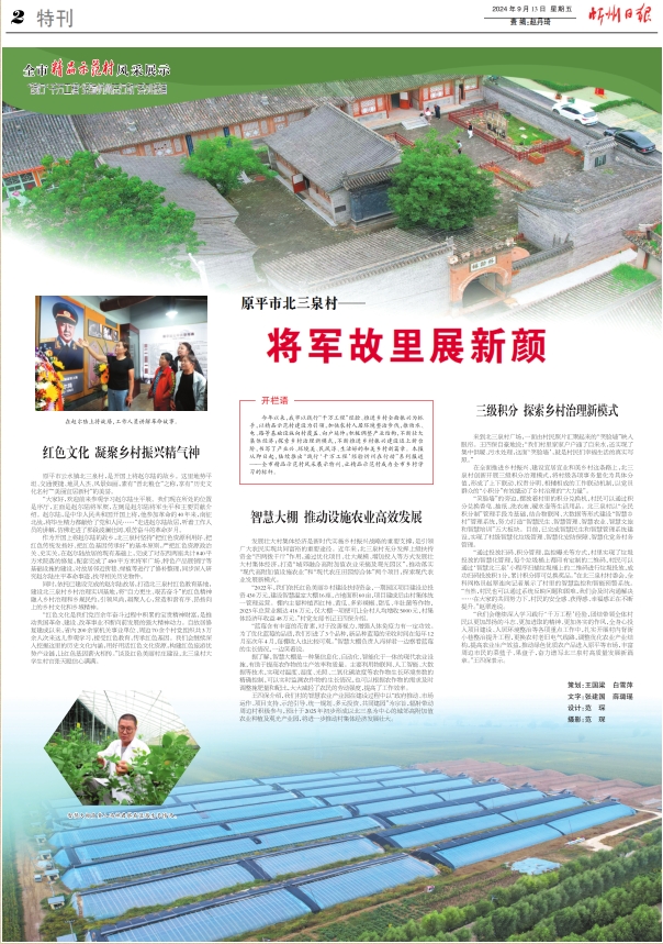 今年以來,我市以踐行“千萬工程”經(jīng)驗、推進鄉(xiāng)村全面振興為抓手,以精品示范村建設(shè)為引領(lǐng),加快農(nóng)村人居環(huán)境整治步伐,推動水、電、路等基礎(chǔ)設(shè)施向村覆蓋、向戶延伸;積極調(diào)整產(chǎn)業(yè)結(jié)構(gòu),不斷壯大集體經(jīng)濟;探索鄉(xiāng)村治理新模式,不斷推進鄉(xiāng)村振興建設(shè)邁上新臺階,書寫了產(chǎn)業(yè)興、環(huán)境美、民風淳、生活好的和美鄉(xiāng)村新篇章。本報從即日起,陸續(xù)推出“踐行‘千萬工程’經(jīng)驗忻州在行動”系列報道——全市精品示范村風采展示特刊,讓精品示范村成為全市鄉(xiāng)村學(xué)習的標桿。