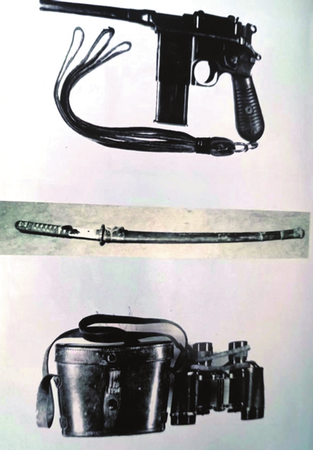 趙正午在與日寇和偽軍的戰(zhàn)斗中,使用最多的是三種武器,即手槍、大刀和望遠(yuǎn)鏡。手槍,該槍型于1895年經(jīng)改裝后由一次性裝10發(fā)子彈發(fā)射變成20發(fā)。這種槍管長約140毫米,口徑7.63毫米。由于槍套是一個(gè)木盒,故又稱這種槍為“匣子槍”“盒子炮”,或“駁殼槍”。八路軍和游擊隊(duì)在抗戰(zhàn)時(shí)期廣泛使用。大刀,刀身采用鎳合金鋼材機(jī)械加工,刀身開設(shè)血槽,刀柄大部分為木質(zhì),全長101.8厘米??箲?zhàn)期間,日軍不少軍刀被我八路軍和游擊隊(duì)繳獲,成為我對(duì)敵作戰(zhàn)的武器之一。當(dāng)年,趙正午在戰(zhàn)斗中繳獲了一把這款軍刀。望遠(yuǎn)鏡,德國于1920年前后研制生產(chǎn)的一種兩筒軍用望遠(yuǎn)鏡,具有較高的放大倍數(shù)和物鏡直徑,適合遠(yuǎn)距離觀察和戰(zhàn)場(chǎng)偵察??箲?zhàn)初期流入我國,該望遠(yuǎn)鏡長16厘米,寬11厘米。忻口戰(zhàn)役后,忻縣游擊隊(duì)在戰(zhàn)場(chǎng)上繳獲。